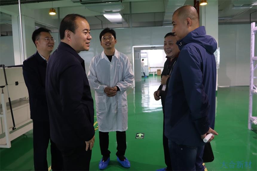2020年3月22日下午,衡阳市委副书记、代市长朱健一行人莅临湖南大合新材料公司指导工作。朱市长认真听取了董事长陈国华的工作汇报,详细了解了公司的发展情况,并深入办公区域、晶体生长车间现场指导工作,不仅对公司所取得的成绩给予充分的肯定,还对公司今后的规划和发展提出了宝贵的建议。